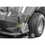 Der neu designte Grasfangkob mit 320L Fangkorbvolumen ermöglicht eine einfache Entleerung vom Fahrersitz sowie komfortables Nachdem Sie den ergonomischen Säbelgriff aus der Rastposition gelöst haben, können Sie das Schnittgut mit geringem Kraftaufwand vollständig entleeren.