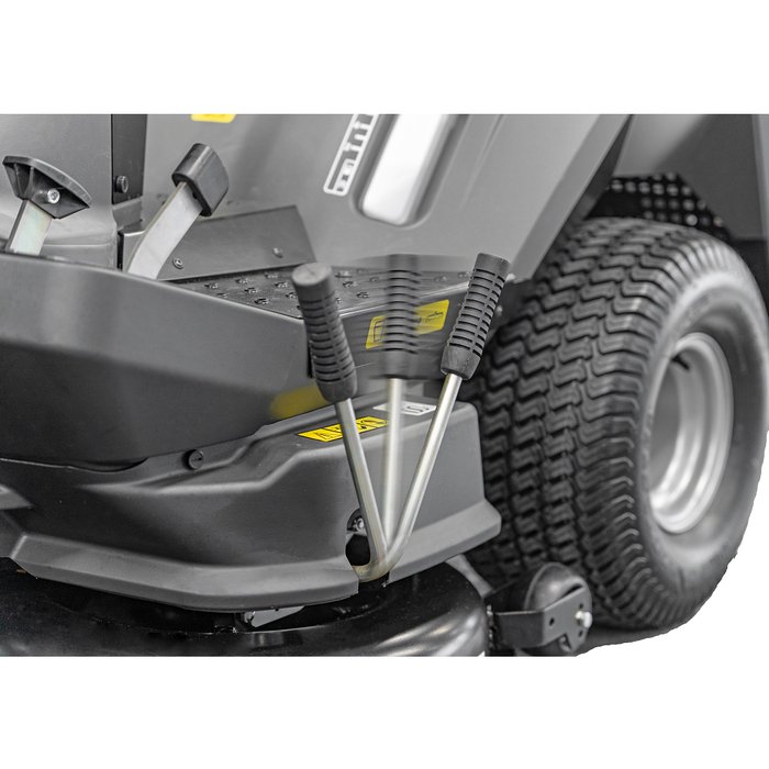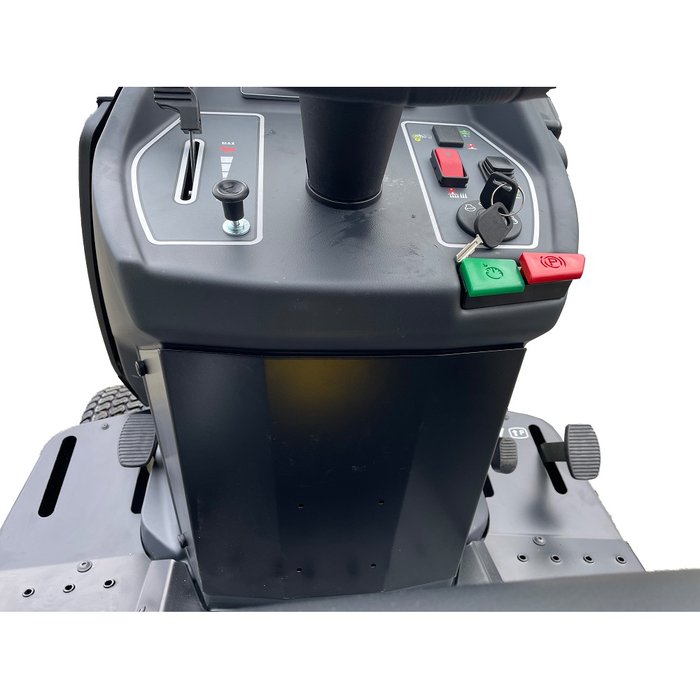 Hochwertige Materialien und ausgereifte Technik werden dadurch zum perfekten Partner für das Mähen von großen Flächen. Der neue Black Edition Rasentraktoren 290/106 Twin H aus der Exclusive-Line Serie wurden sowohl im Design als auch in ihrer technischen Funktion grundlegend überarbeitet. So überzeugen die Black Edition Rasentraktoren mit robustem Stahlblech in den Radkästen, Stahltrittblechen und einer Batterieabdeckung aus Stahlblech. Auch der Fangkorb wurde für eine komfortablere Handhabung komplett überarbeitet. Für eine ergonomische Sitzposition wurde das Mittelpanel verengt und der Komfortsitz mit Armlehnen ausgerüstet. Der Rasentraktor verfügt über einen Emak 2 Zyl. V-Twin K2400 AVD Motor, der für eine zuverlässige und leistungsstarke Leistung sorgt. Für eine ergonomische Sitzposition wurde das Mittelpanel verengt und der Komfortsitz mit Armlehnen ausgerüstet. Alle Bedienelemente unserer Rasentraktoren sowie Aufsitzmäher sind so angebracht, dass sie vom Fahrersitz aus optimal zu bedienen sind. Dank des übersichtlichen Digi-Cockpitdisplay haben Sie die Betriebsstunden, Ladestand der Batterie, Tankreserve oder relevante Sicherheitsfunktionen ständig im Blick.