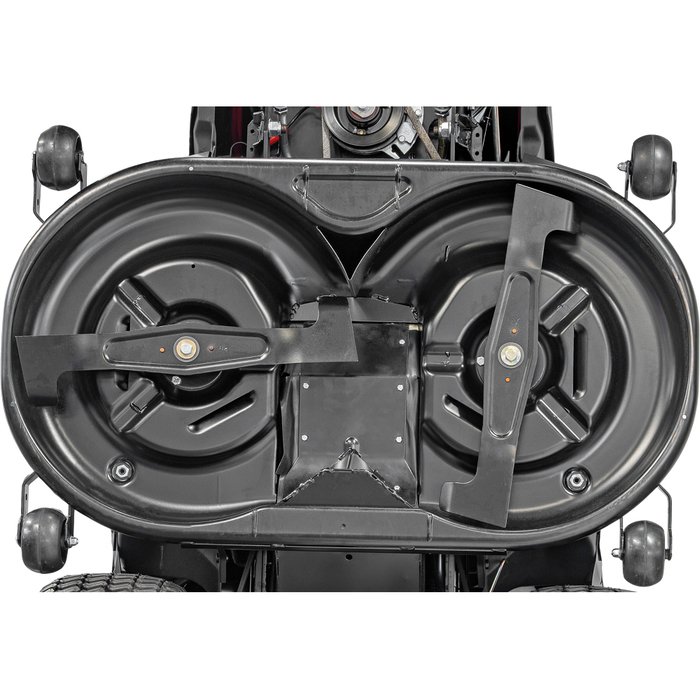 102 cm breites Mähdeck mit zwei Messern und 4 Mähwerksrollen.Das Mähwerk besitzt einen Reinigungsanschluß